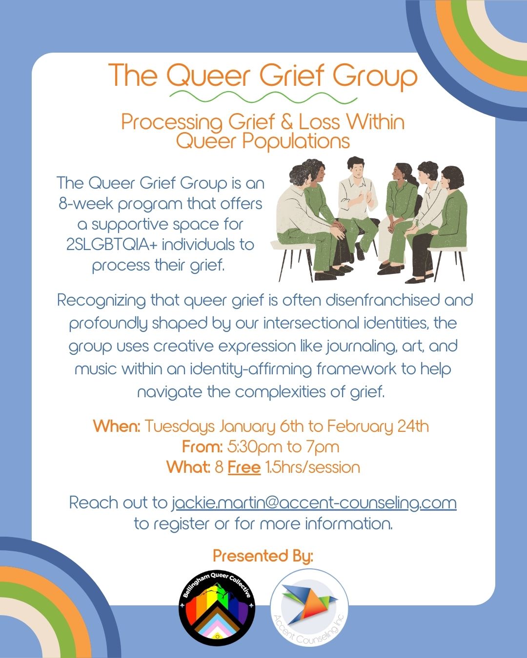 The Queer Grief Group – Processing Grief & Loss Within Queer Populations will be starting January 6th, 2026
